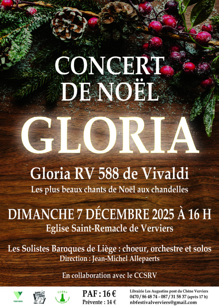 Lors de ce concert, le public pourra entendre le Jubilate et le Gloria de Vivaldi (RV 588) par les Solistes Baroques de Liège, placés sous la direction de Jean-Michel Allepaerts.